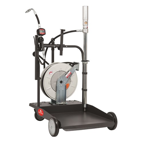 The Alemlube EL Series O30070 Oil Tansfer Kit with Meter, Hose Reel & Trolley is ideal for dispensing oil with a maximum viscosity of SAE130 anywhere, any time. Representing excellent value for money, the Alemlube EL Series O30070 gives you the opportunity to upgrade from standard hand operated oil drum pumps to a pneumatic solution with the benefit of a dual pedestal oil hose reel complete with 15m of 1/2" ID S.A.E. 1001R1 wire braid hose. The electronic meter with its ergonomic grip is easy to operate and features a lock on device for your convenience. The O30070 3:1 ratio oil pump is suitable for use with 205L oil drums to perform intermittent or seasonal work complete with the versatility of mobility. Smart design with fewer working parts effectively facilitates a lower cost of ownership and ensures a long service life. Manufactured with efficiency and reliability in mind, the O30070 Oil Transfer Kit with Digital Meter, Hose Reel & Trolley is well designed, affordable and is supported by readily available spare parts and our own factory trained technicians available to provide after sales service support.