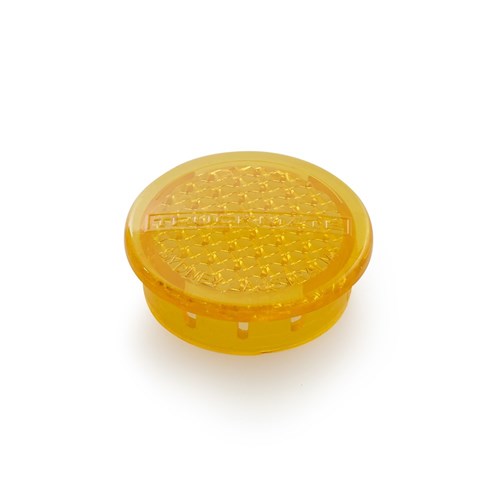 Reflective end-cap designed to suit chassis mounting brackets are injection moulded from polycarbonate. Unique design refracts light and becomes visible when lit by vehicle headlights which increases side-on visibility of trucks and trailers.