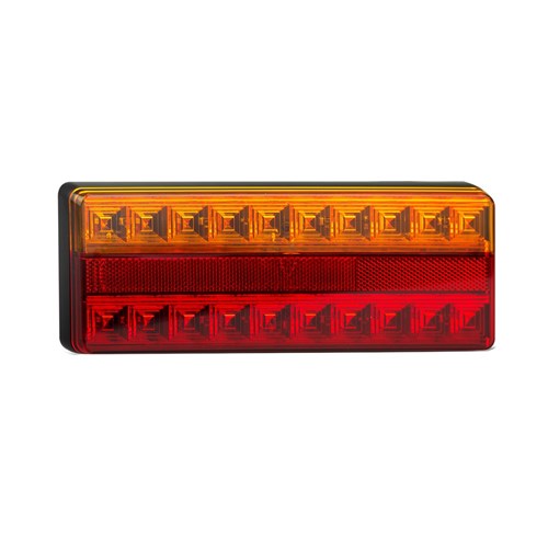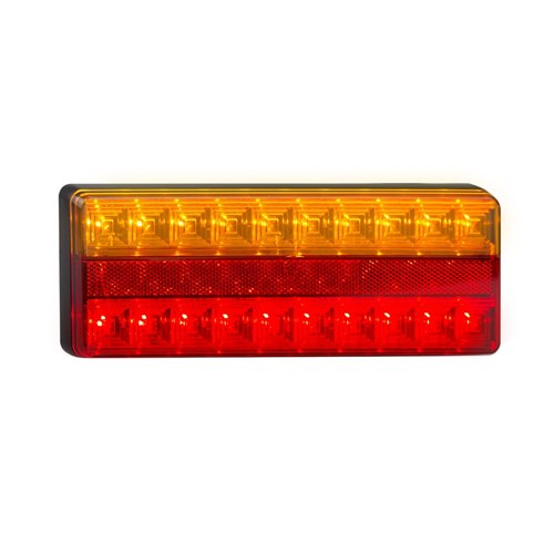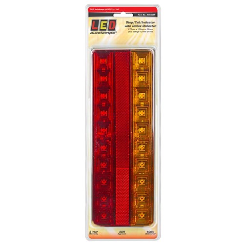 Stop/Tail/Indicator lamps with reflex reflector to suit 12 & 24 Volt Vehicles. 275 x 100 x 22mm. With White Background. ADR Approved CRN 38657/38658