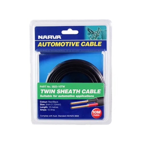 NARVA 10A 3MM TWIN CABLE RED/BLACK 10M