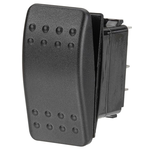 DPDT, push-fit design with push on terminals Amperage rating 20A at 12V, 10A at 24V Mounting opening: 37.5 x 21mm