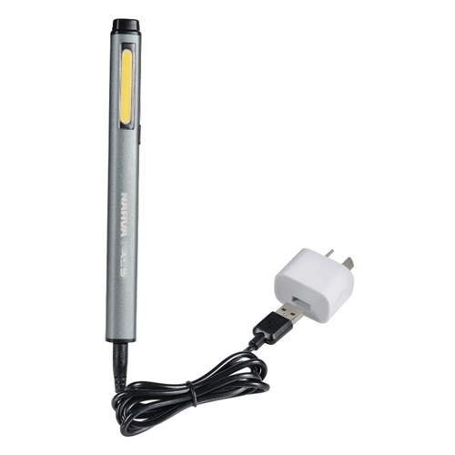 This exceptionally built versatile pen light produces a bright 150 lumen crisp white light output thanks to the high efficiency COB L.E.D. Select the output between 2 (peak output) and 4 (low output) hours continuous run time with a quick 2–3 hour charge time. The Off/On switch is mounted conveniently to allow easy operation and includes brightness memory