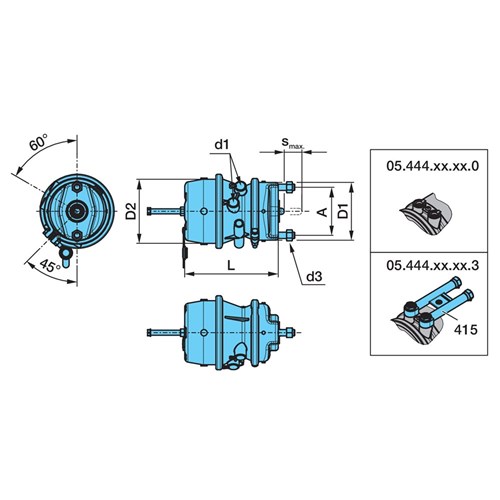 BPW double diaphram brake cylinder 14 / 24" to use with BPW trailer axle with disc brake - Left Hand.