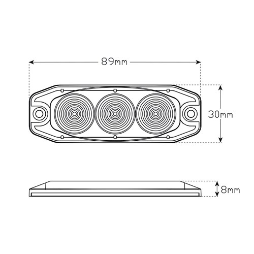 Amber Emergency Lamp, 11 Flash Patterns with Sync Wire, 12-24 Volt, 3M Tape fitting, 89mm x 30mm x 8mm, Blister, SAE J595 Class 1