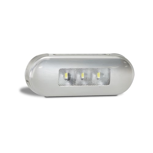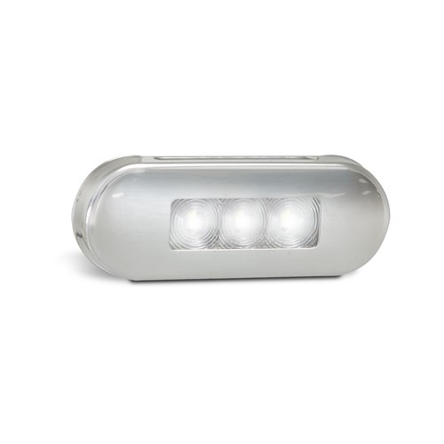 White Front End Outline Marker, clear lens coloured LEDs, stainless steel bezel, 12-24V, 86x31x10mm, Blister, ADR 46897