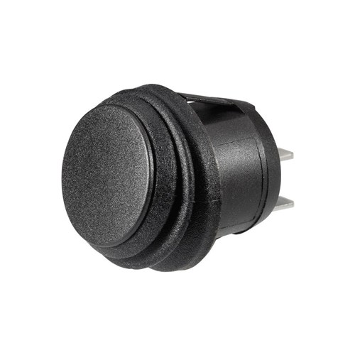 SPST, IP65 rated, push-fit design with push on terminals Amperage rating 30A at 12V, 15A at 24V Mounting opening 20mm dia.