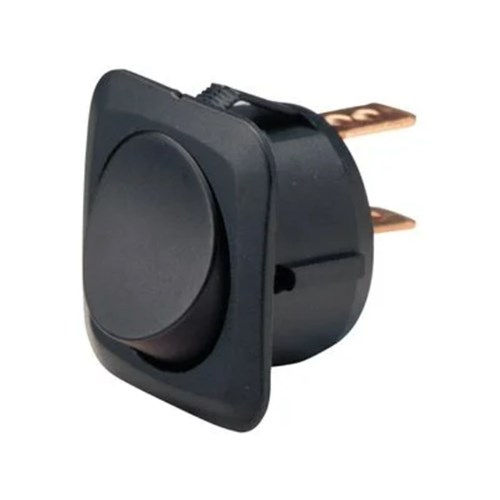 SPST, push-fit design with push on terminals Amperage rating 25A at 12V, 12.5A at 24V Mounting opening 24mm dia.