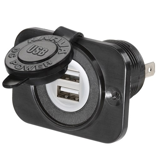 Features dustproof cover and heavy-duty construction. Can be installed with or without the mounting panel. Output 5V, 2.5A Mounting opening 29mm dia.