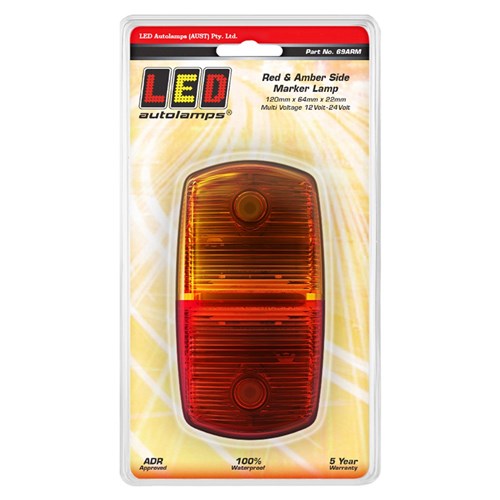 Amber / Red side marker light, 12-24 volt, 120 x 64 x 22mm, blister, ADR Approved