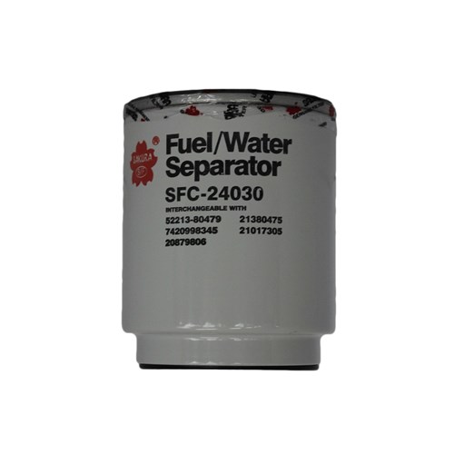Sakura Primary Fuel Water Separator Filter, Spin-On- SFC-24030. Sakura Fuel/Water Separators remove the water component from fuel before it reaches you injection system. This prevents system failure. All products are tested to the 1S0/IEC 17025:2005 standard and accredited laboratory.